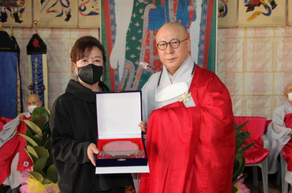 또 김영득 불교대학 회장에게 공로패를 수여했으며, 박다인 불교대학 총무에게 감사패, 신인휴 거사에게 우정패를 수여했다. 부상으로는 강주 목우스님의 휘호가 전달됐다.